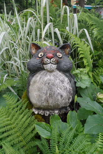 Gerry sculpted this "Watch Cat" to oversee the garden!