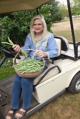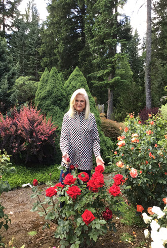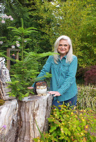 Gerry writes her thoughts and holds her cat, Coco in her garden sanctuary.